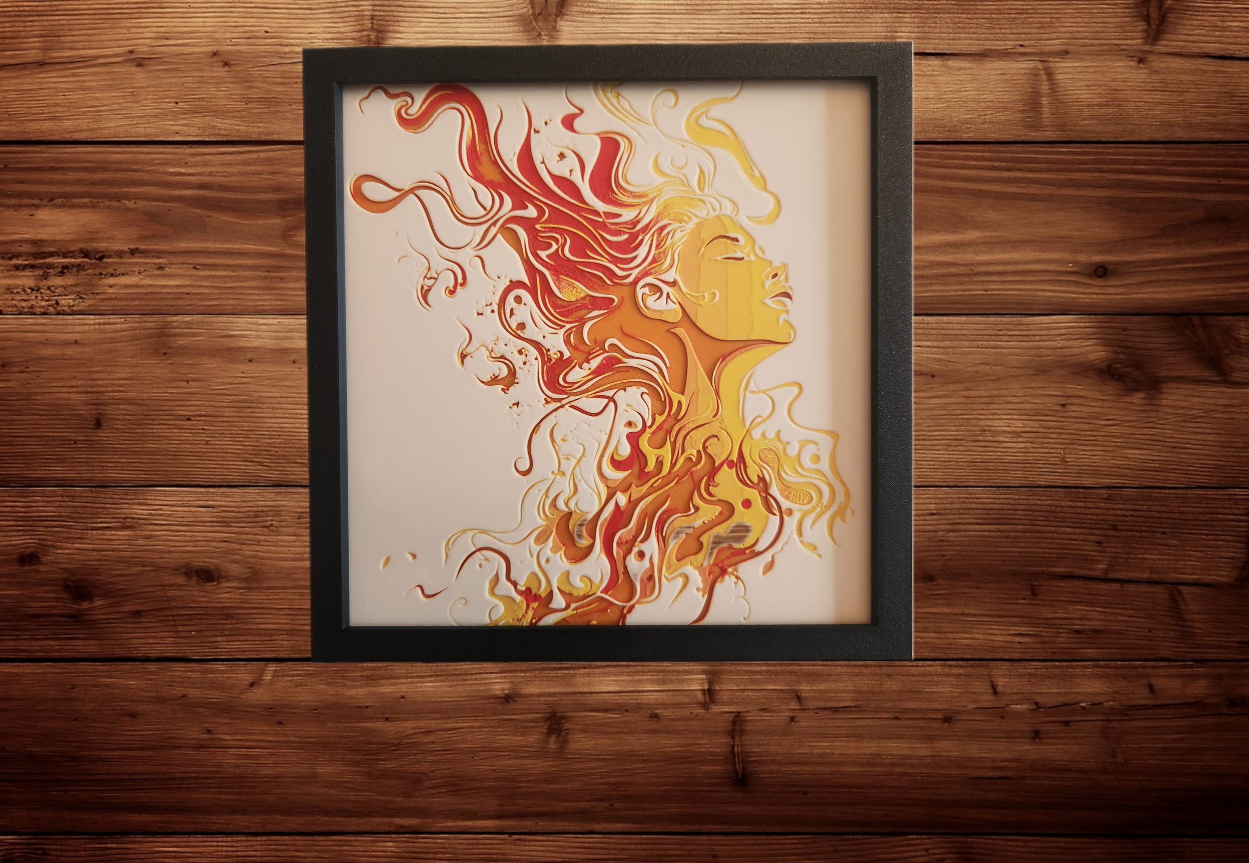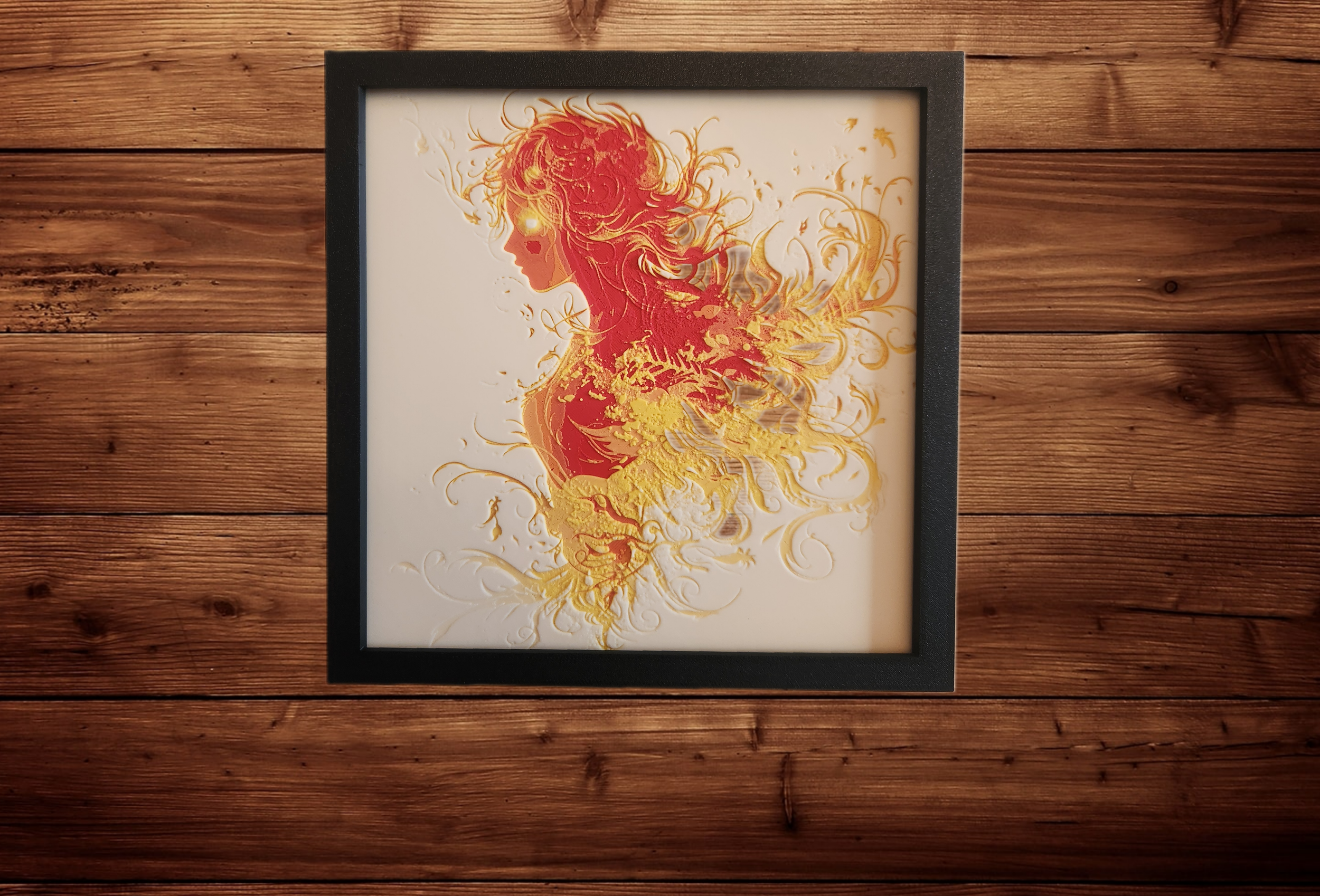Instead of ink or paint, each piece is built by stacking very thin layers of coloured filament. The colours blend when viewed from the front, and the layered depth tactile feeling really makes them come alive. People almost always react with a “Woah” and its definitely a natural conversation starter. It blends several artistic techniques into one piece, creating something truly eye-catching and unique. From recreations and interpretations of Vincent van Gough’s The Starry Night to modern pop culture fan art inspired pieces like K-Pop Demon Hunters it can be done.