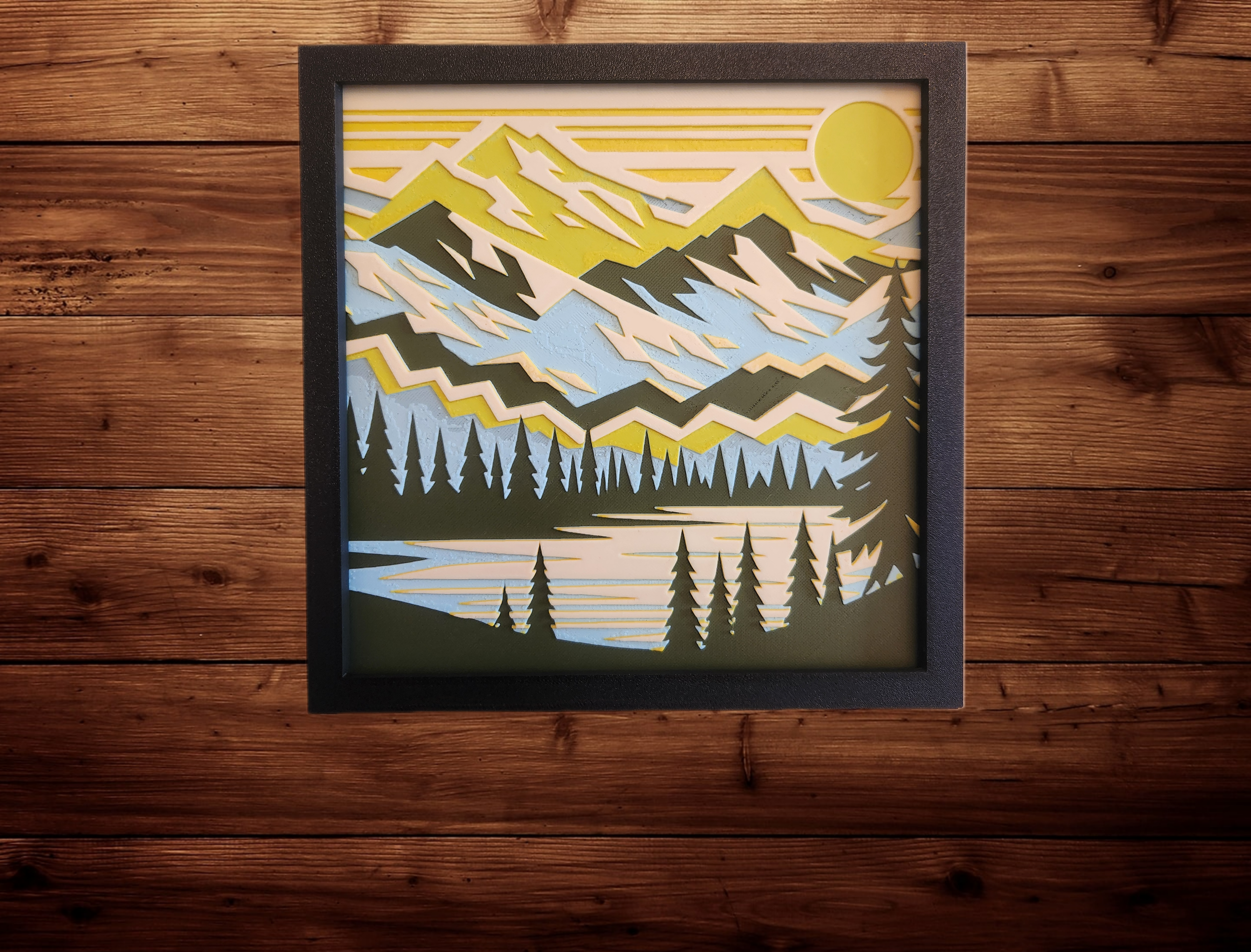 I’m LJ, a Canadian 3D printing artist and the maker behind Side Quest Shenanigans. This site is my gallery for HueForge prints—layered 3D-printed artwork that blends colour, depth, and light into pieces that look like mini paintings (200x200MM).